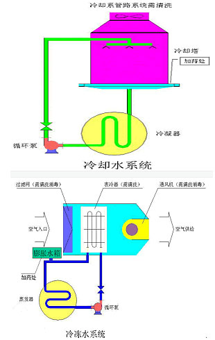 3、 冷卻水系統化學(xué)清洗(含主機冷凝器、吸收器銅管簇、冷卻塔的清洗)
